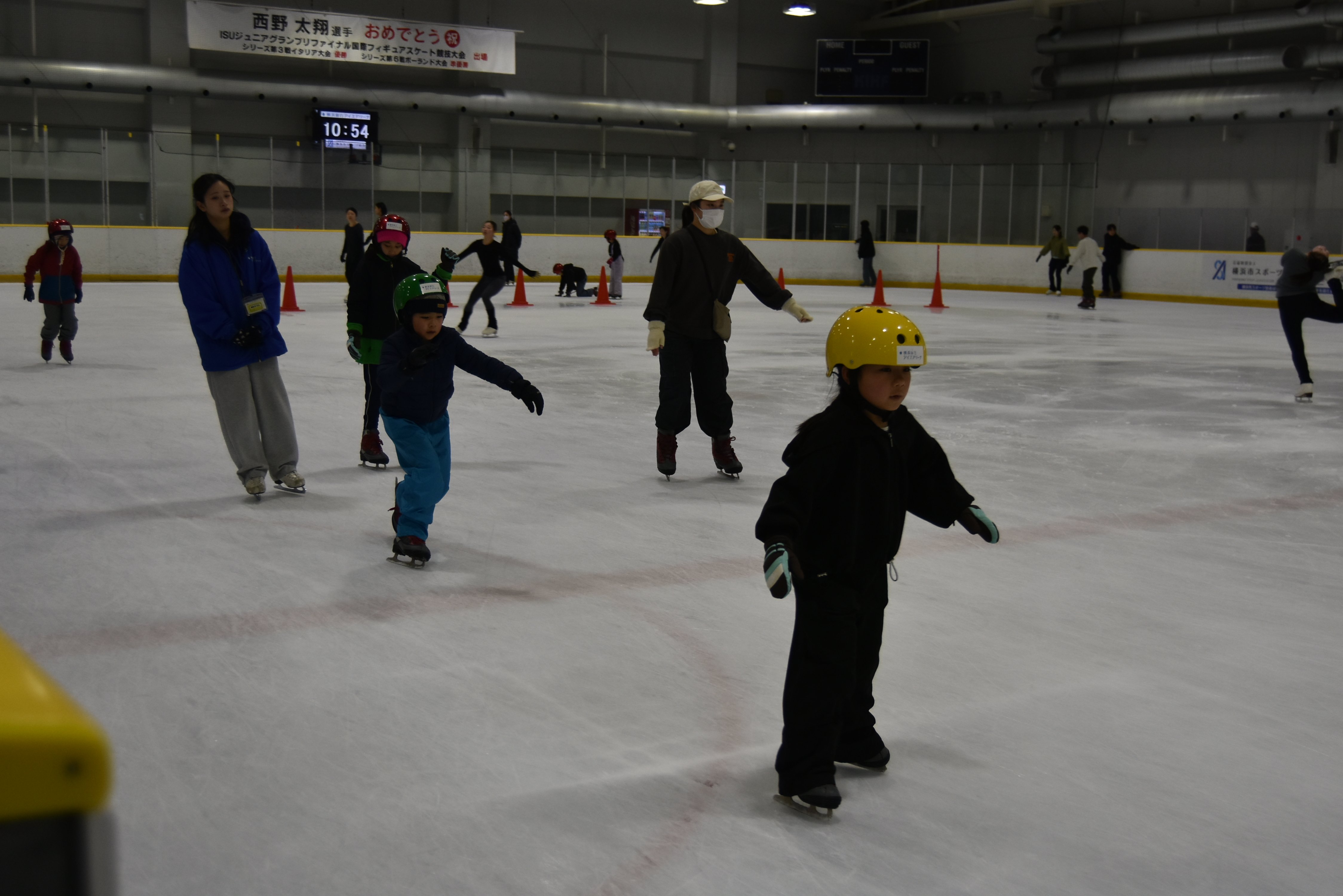 小さなリンクである程度滑れるようになると、大きなリンクに移動して、他のお客さんにも気をつけながら楽しそうに滑っていました。