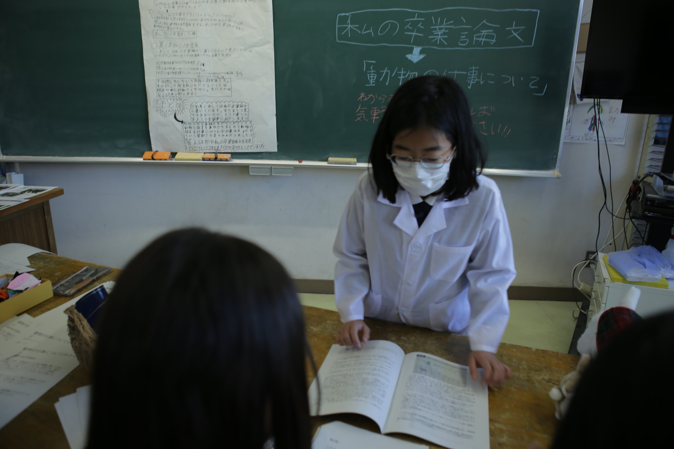 今回の卒業論文のテーマは、動物の仕事・プログラミングの世界・恐竜・サッカー・野球・テニス・農業・ゴスペルフラ・ゴスペルダンス・新体操と、幅広いテーマがありました。