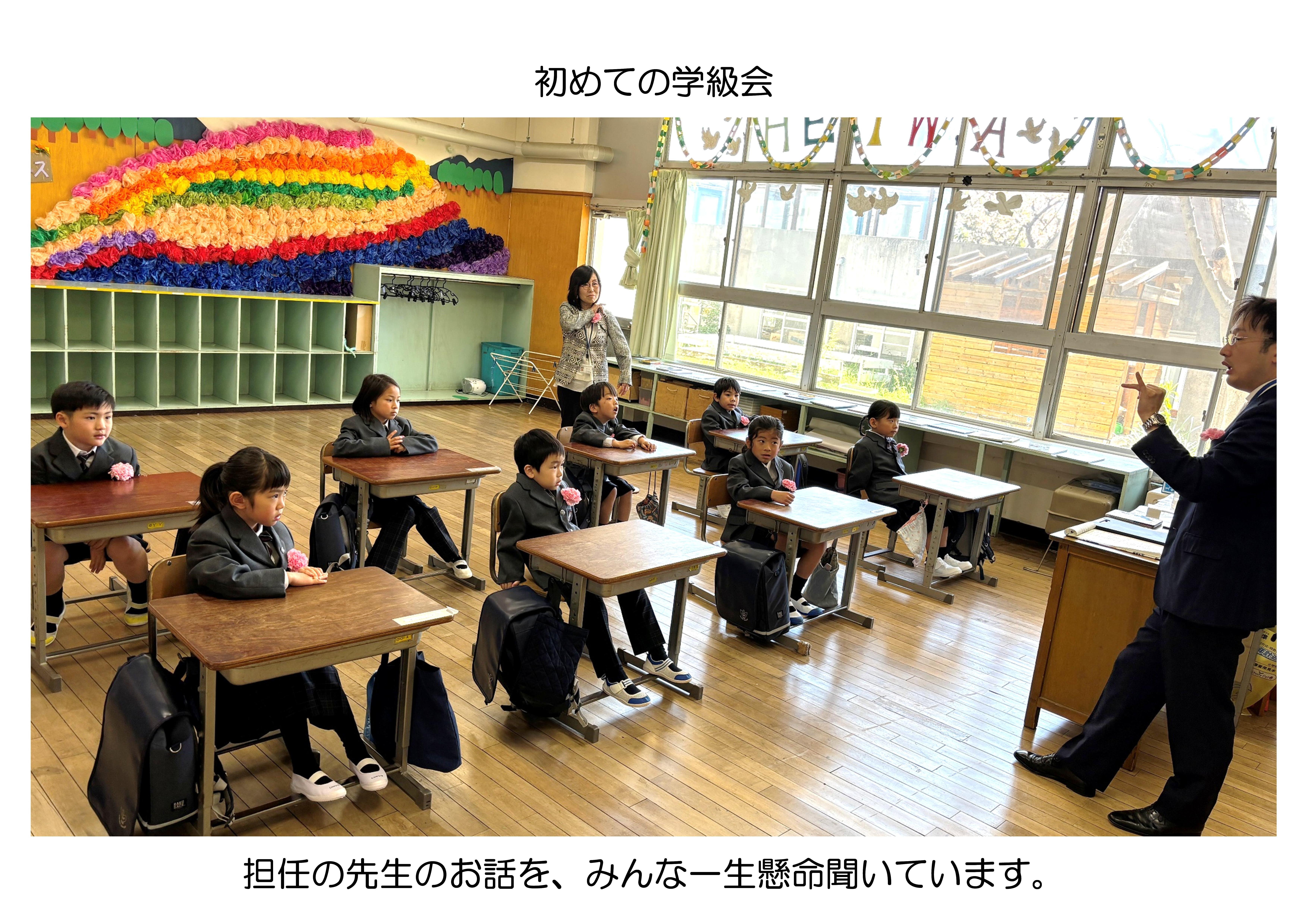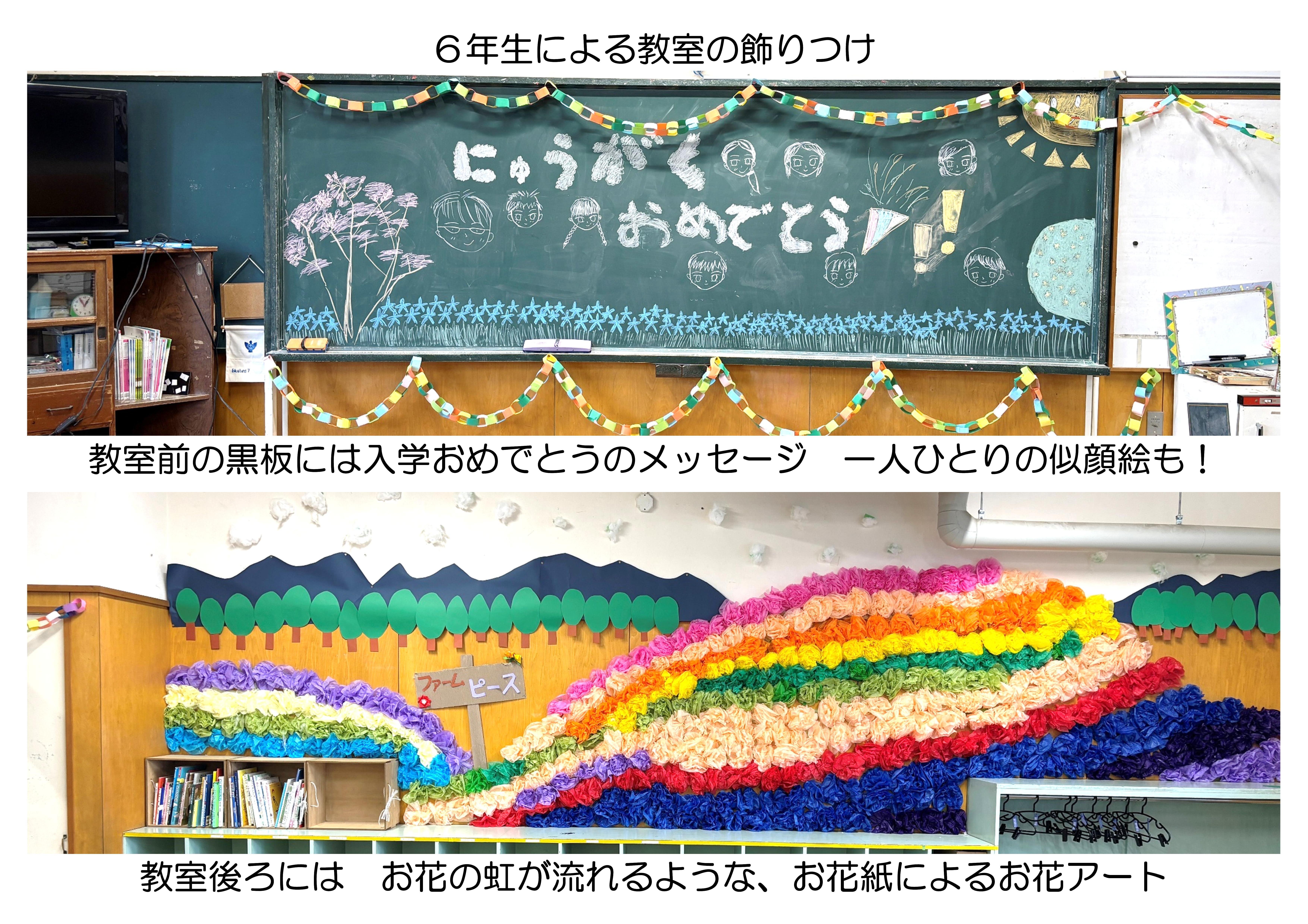 2026年4月 8日 新入学おめでとう! 入学式が行われました。校長先生から「あなたはあなただから大切なんだよ」とのメッセージ。そして「君は愛されるために生まれた」という歌のプレゼントがありました。 入学式が終わると最初の学級会。担任の先生のお話をみんな一生懸命来ていました。教室の飾りつけは6年生。歓迎の気持ちを込めて、前の日に時間をかけて準備をしました。 新入生の学校生活が、楽しく豊かなものになるようにとお祈りしています。