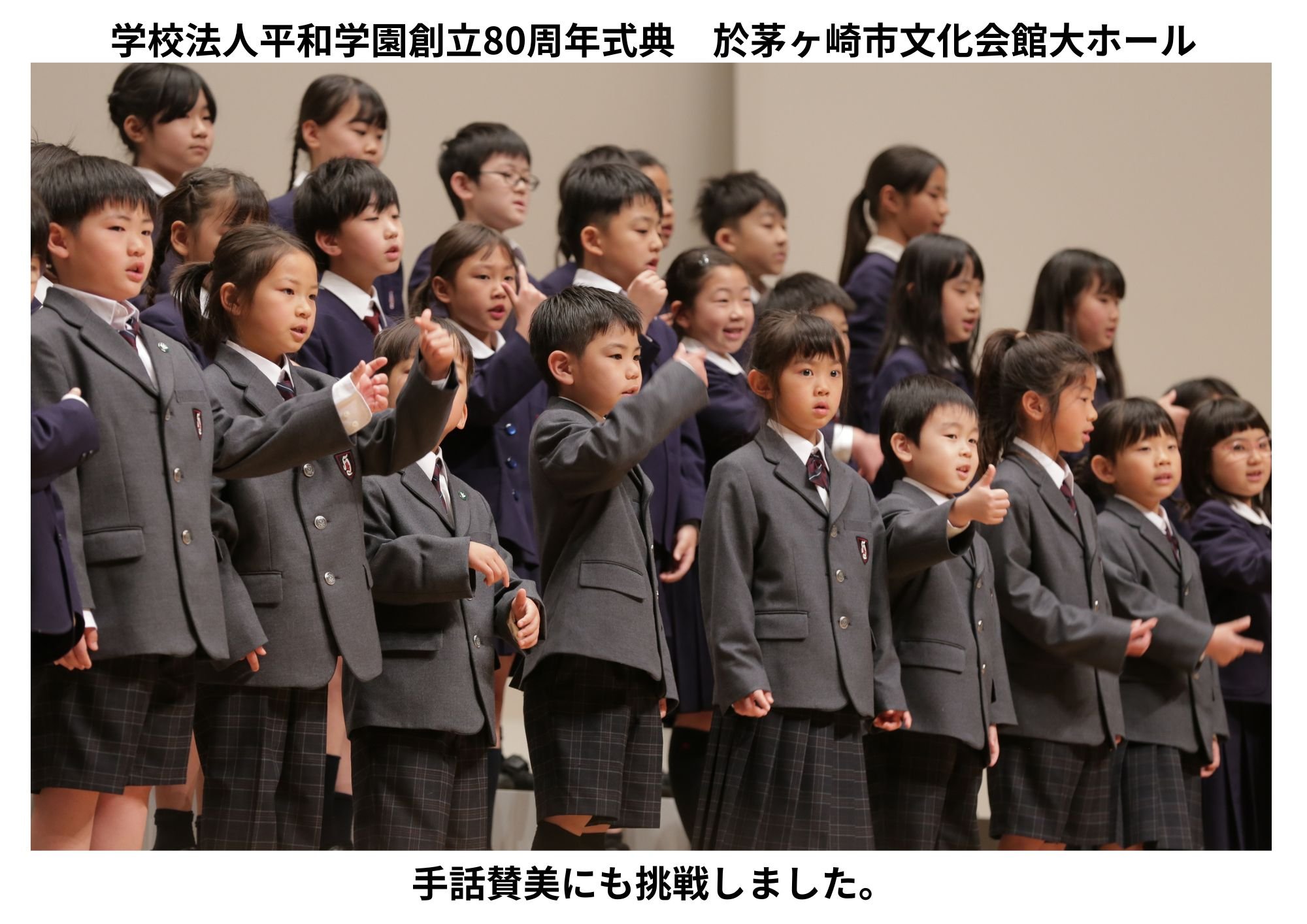 2026年4月24日 創立80周年記念音楽会 小学生の賛美メドレー 2026年4月23日 茅ヶ崎市文化会館大ホールで創立80周年記念式典が行われました。 小学生は毎朝歌っている賛美歌をメドレーにして合唱しました。 みんなで気持ちを一つにして大きな声で賛美しました。